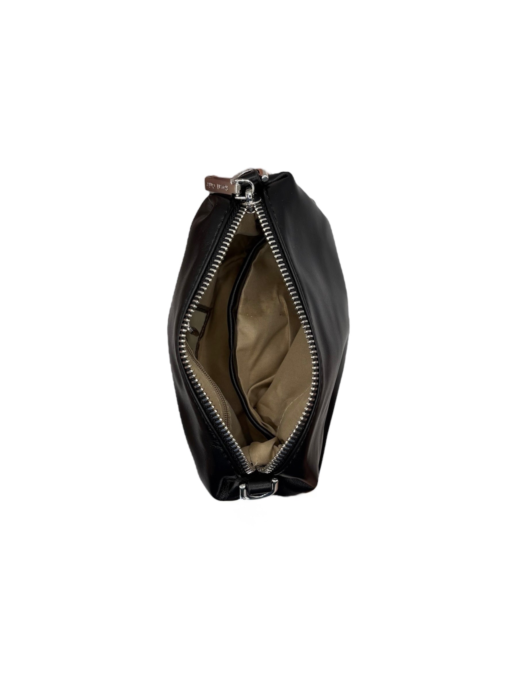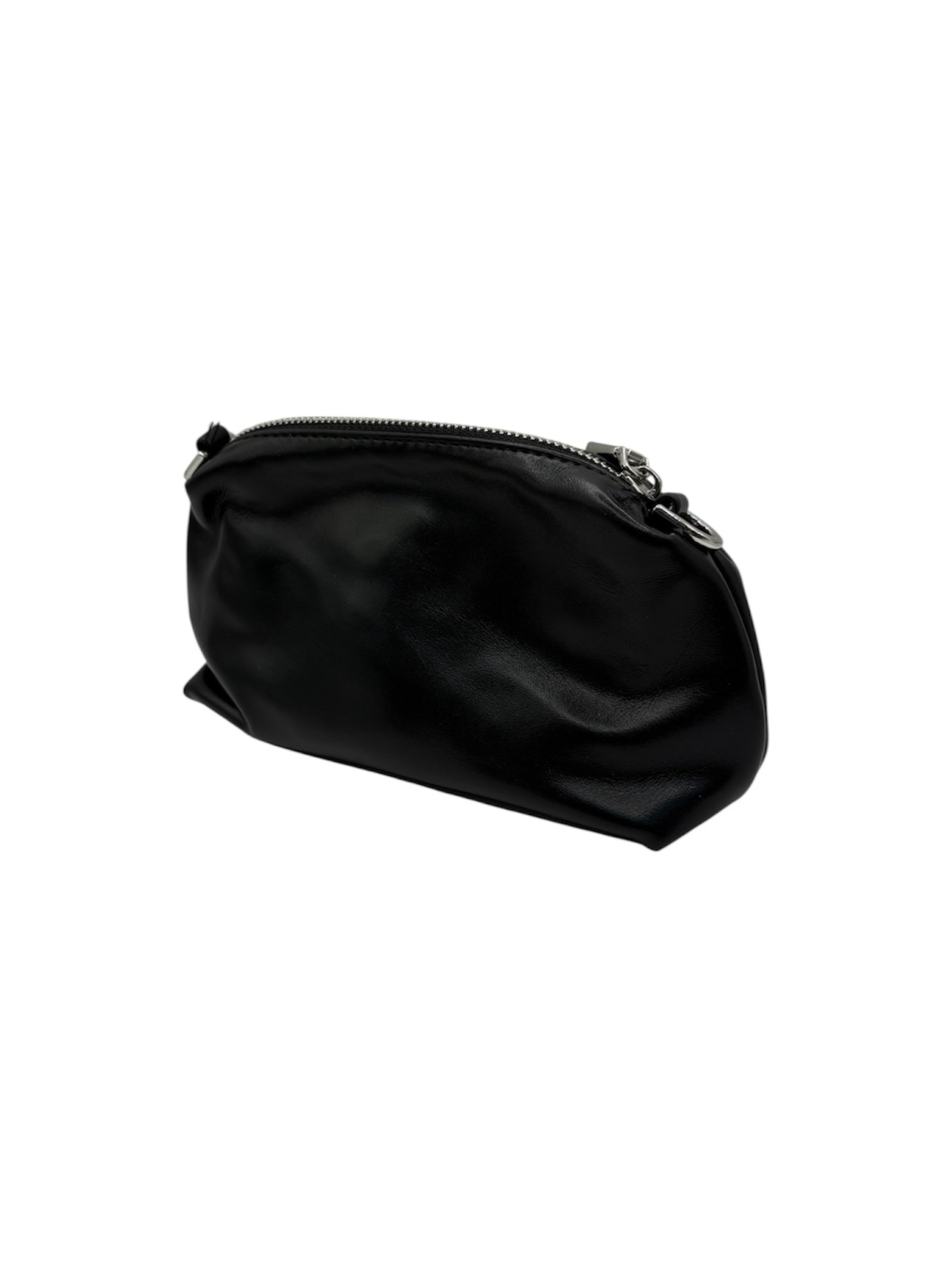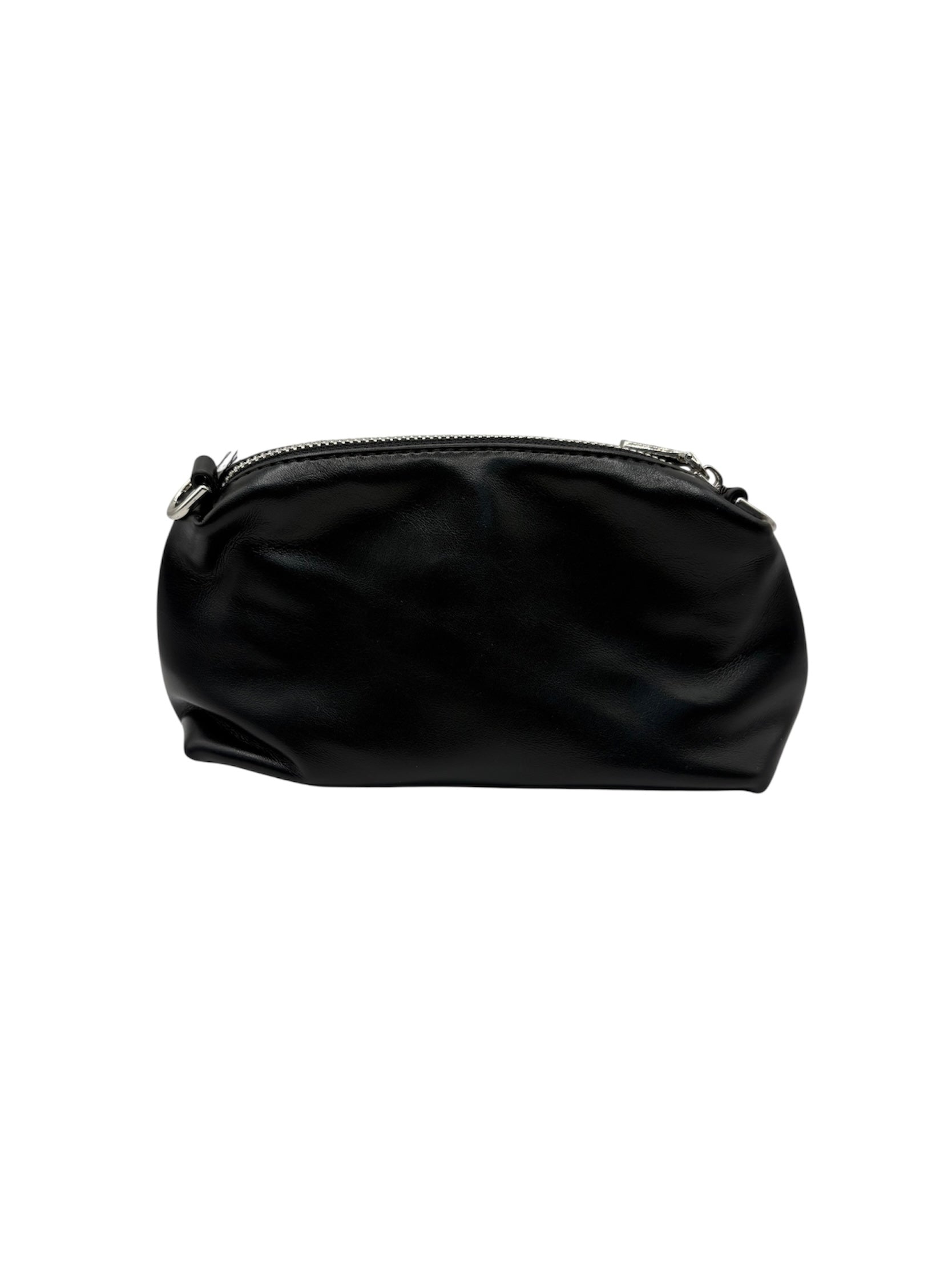 A two-piece handbag set featuring a black woven design with a detachable inner pouch. Comes with a removable adjustable long strap for crossbody use. Stylish and practical, decorated with a playful charm.